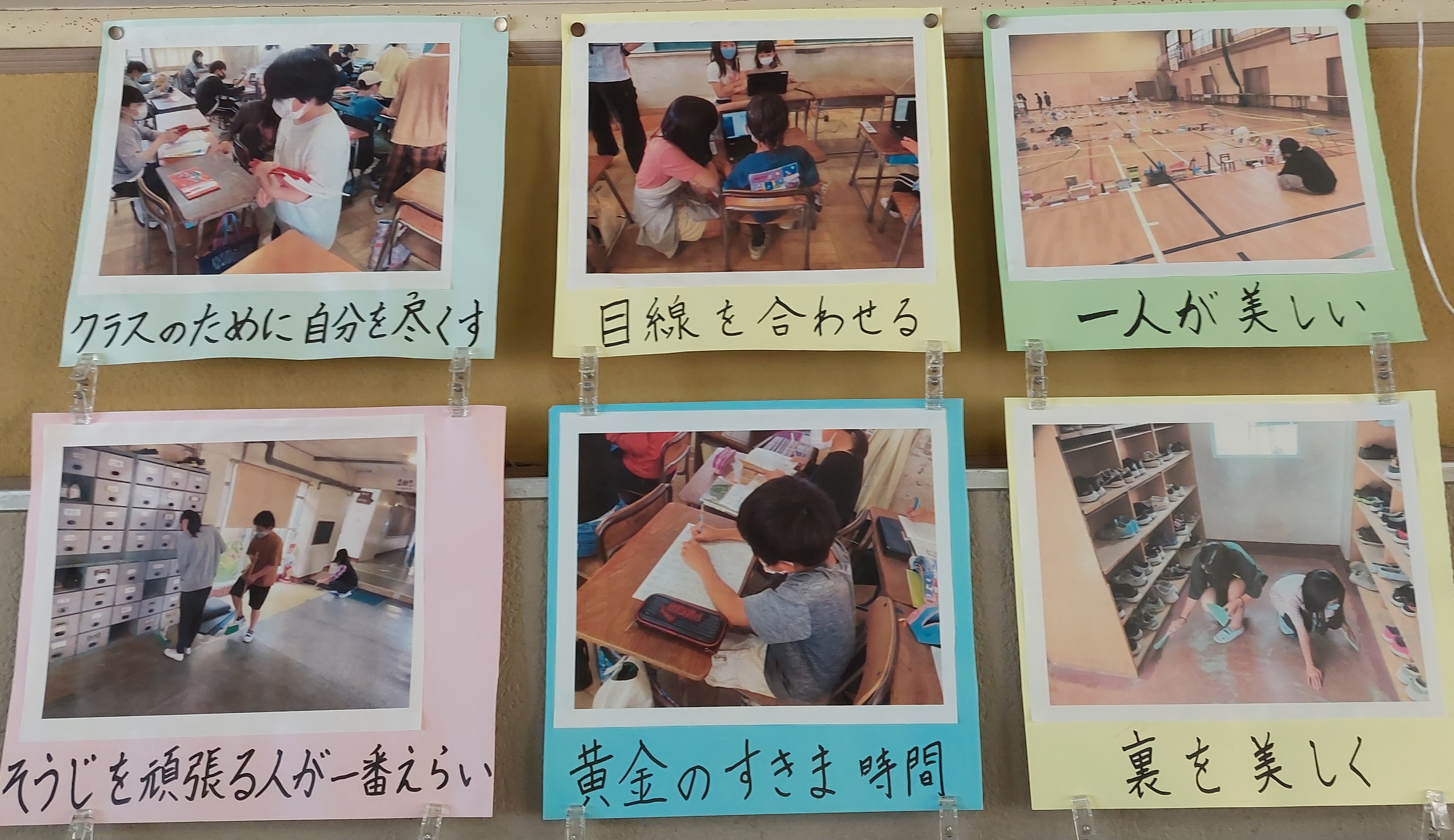 6年生の教室掲示を見ると、この一年の歩みが感じとれます。
