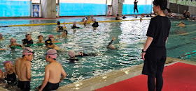 給食を食べてからバスに乗り、マコトスイミングへ。